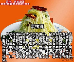 中國食品網和食品論壇曾羅列出有55種,稱"中國有毒食品大全",提醒世人關注食品安全。下列55種有毒食品: