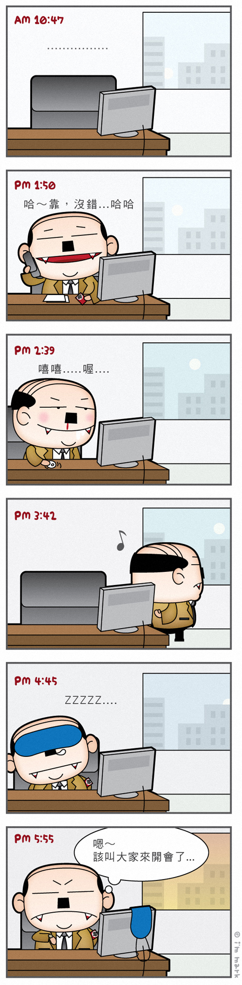 在此也特別呼籲尚未腐敗的朋友們,若是有一天你飛黃騰達了,切記準時是種美德,不要讓大家為了滿足你個人的虛榮而加班,不要讓我們受的委屈再出現。好嗎? >__<