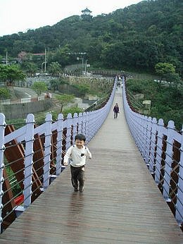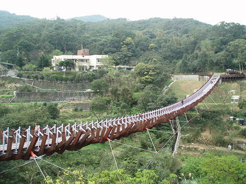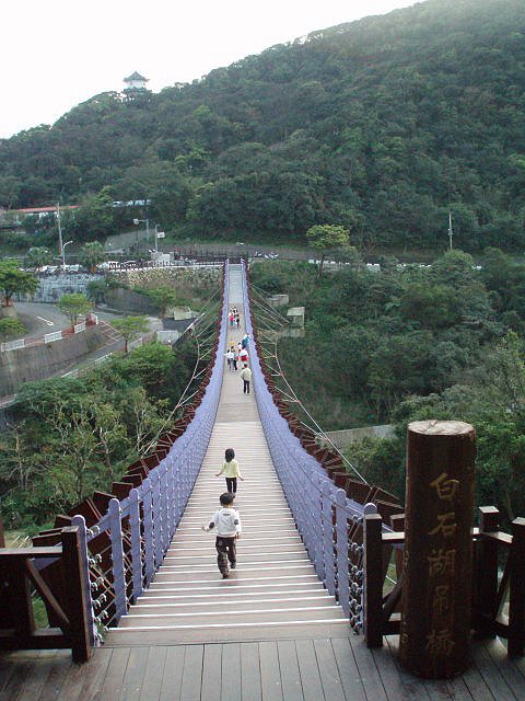 內湖「白石湖吊橋」是今年新春大年初一才完工開放通行的吊橋,吊橋全長116公尺,號稱是台北市第一座大跨距的吊橋。