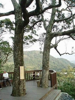 沿著溼地旁的碧山路往前走幾十公尺,右側有兩棵高長並立的楠木,被稱為「夫妻樹」。樹下設有小觀景台,可眺望白石湖山谷。旁鄰有間古厝民宅,民宅老伯坐樹旁木椅與遊客聊天講古。他說,年紀已老,閒閒無事,現在這裡建了一座觀景台,每天可以與遊客閒聊打發時間,生活也變得更有趣味了。