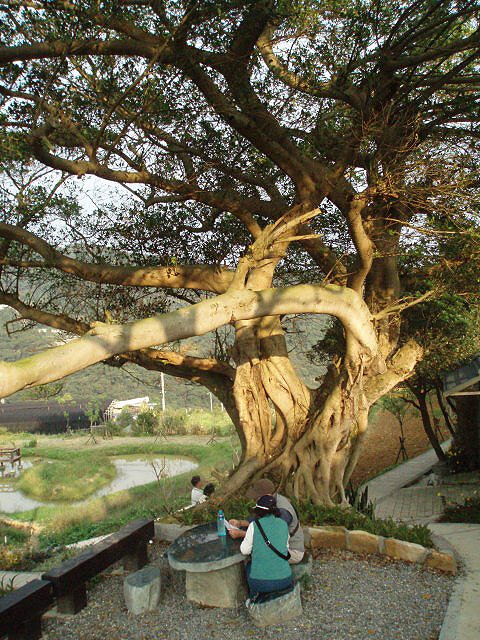 從吊橋一路散步而來,走走停停,至夫妻樹,約半小時。白石湖聚落只是單純的山間農村風情而己。若問風景如何?我想世上的風景可粗歸為兩大類:大景與小景。以詩來形容,「落日照大旗,馬鳴風蕭蕭」是大景;「細雨魚兒出,微風燕子斜」,則是小景。《人間詞話》的作者王國維說:「境界有大小,不以是而分優劣。」 年輕人,多嚮往大山大景;中老年人,則能自得於小橋流水。喜好不同,反映了人生不同階段的心境。