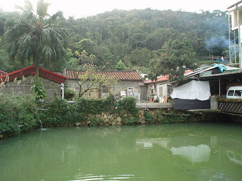 後湖溼地旁的三合院古厝,前有小埤塘。