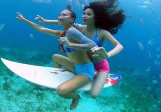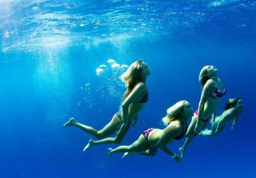 美女們在水中彷彿就像是在水中的美人魚一樣~