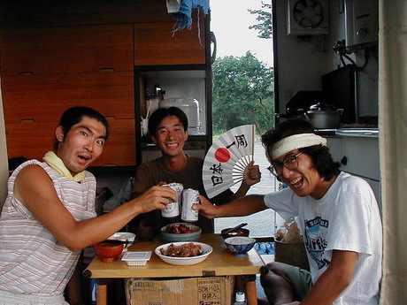 屬於三個日本大男生的堅持!「先來乾一杯,慶祝我們達成夢想!」他們的目標是靠自己的力量走遍Yakushima,但這不稀奇,他們還要帶著自己的家當浪跡天涯!不只衣物、日常用品,連電鍋、廚房、衛浴設備…家裡全部設備都想帶著走!?