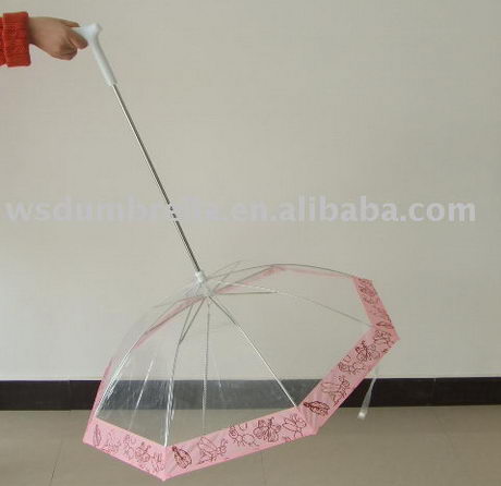 傘下還設計有讓狗鍊扣上的環節,如此一來就可同時牽著狗鍊、「幫」狗兒撐傘了。廠商還推出不同尺寸的傘,有如幫大小型犬量身訂做。