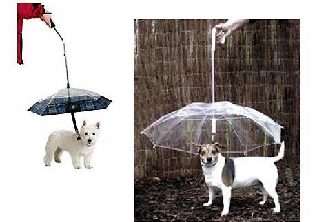 現在歐美很多網站都在賣這種專門帶狗狗散步用的小雨傘。人用的傘架是往上撐,狗狗用的則是往下反摺過來。