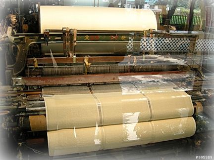 這就是剛前面稍微提到的經紗部了,導覽的小姐笑著說這是傳說中的盤絲洞。一整片的絲線真的相當壯觀。小姐還說如果最後織造的毛巾成品是彩色花紋的,那麼經紗部這邊的絲線將會是五顏六色,更加漂亮。