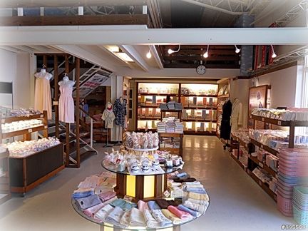透過透明櫥窗,可以看到毛巾製作的過程。機器運轉的情況下,梭子來回撞擊發出規律且不見斷的聲響。到了那邊,真的可以體會到毛巾製作真的是相當辛苦的工作。不但工作環境有大量的棉絮,光梭子發出不見斷的撞擊聲對一般人來說就是一種酷刑啊!不禁讓我對裡面的工作人員感到萬分的佩服。