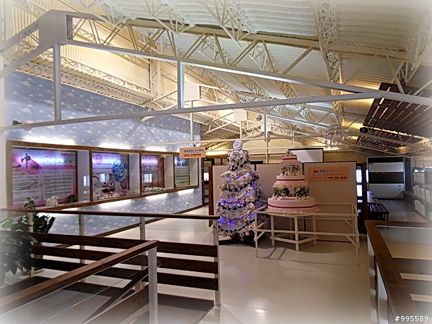 另一邊則是幸福蛋糕DIY廚房,入口處展示了三層蛋糕與耶誕樹。很難想像這些蛋糕與耶誕樹都是毛巾製作的吧?製作人員的巧手真的是令人感到驚嘆,尤其蛋糕的奶油花邊,跟真的沒兩樣。