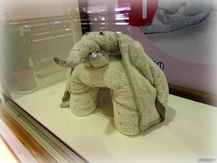 DIY廚房一旁還有展示櫃,展示了各種用毛巾折出來的可愛動物,有大象、天鵝、泰迪熊、小兔子,還有一隻超大的鱷魚。我的天啊,這都是誰想出來的,師傅的妙手真的令人佩服。