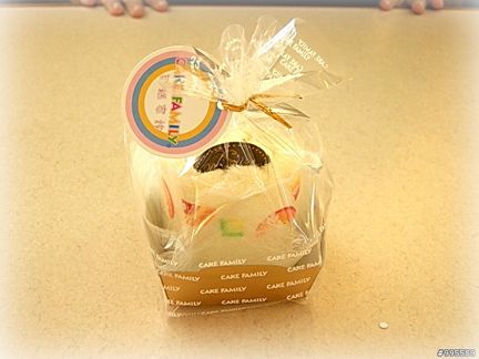 放上蛋糕標籤,好吃的水果優格蛋糕就出爐囉。
