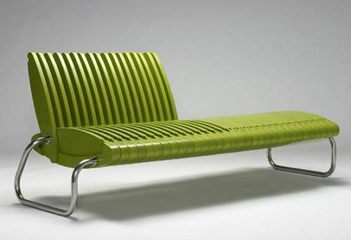 這款長椅的設計非常有趣,它採用了穿插的結構,使得椅背和椅面可以結合成一體,需要的時候將其展開即可。而且由於採用了相互獨立的穿插結構,因此靠背處的大小可以根據需要隨意調節。