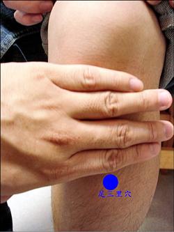(腿) 足三里穴:膝蓋骨外側下方凹陷往下約4指寬處:修飾曲線,恢復窈窕、促進腸胃功能的恢復、促進代謝。
