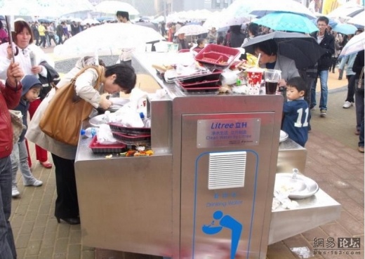 園區裡免費飲水區變成了垃圾堆,弄得誰也不能喝水。