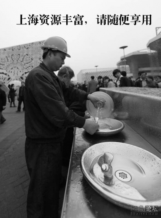 今天是世博試運行第一天,在裡面逛了一天,又一次領略國人的素質。 從進門開始就哄搶園區導覽圖,看到志願者手裡有圖就一擁而上,哄搶一空,沒搶到的人會爭先恐後擁到下一個志願者那裡,幾秒鐘就又一掃而光,老伯阿姨們就如猛虎下山般勇猛。