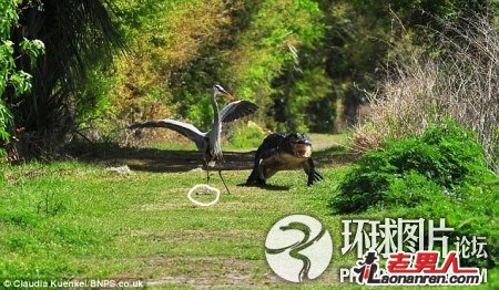 近日,美國福羅里達州野生動物保護區上演了一聲母鱷護子大戰。一只饑不擇食的大藍鷺盡然跑到鱷魚窩里搶食鱷魚寶寶,遭到母鱷瘋狂追擊。面對鱷魚鋒利的牙齒,鷺鳥最后只能放棄到嘴的食物,落荒而逃。 6英寸 長的鱷魚寶寶隨后被它的母親帶回"家"里,留心守護。