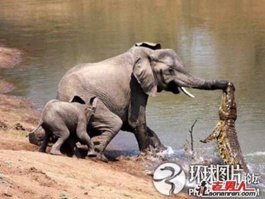 非洲贊比亞的南盧旺瓜河國家公園于2010年11月發生驚人一墓:兩頭非洲象來到湖邊喝水,沒想到湖中的鱷魚突然發動襲擊,緊咬著象鼻不放,大象用力一甩,才擺脫鱷魚。