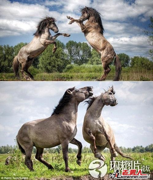 一位攝影師于2010年11月在荷蘭自然保護區內拍到了兩匹雄性野馬為爭奪與母馬的交配權而激烈大戰的場面。攝影師亨利看到了這些野馬用后退站立,齜牙咧嘴,奮力打斗的場面,并拍了下來。