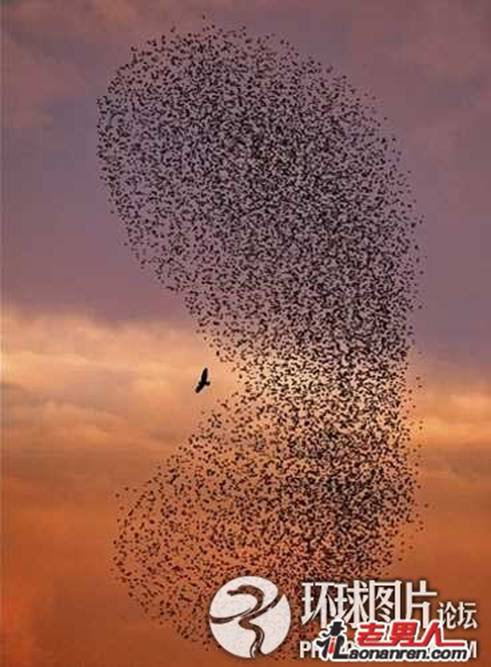 白腹鷂原想抓八哥美餐被鳥群團團包圍逼退 正所謂"團結就是力量"。2010年12月,意大利業余攝影師克里斯伯尼拍攝到的一張照片可說是表露無遺。據了解,一只單打獨斗的白腹鷂原想抓只在瀉湖旁休息的八哥鳥飽餐一頓,不料,八哥鳥群迅速以龐大的隊形包圍落單的白腹鷂,使得它不得不落荒而逃。