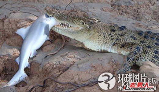 澳大利亞咸水鱷魚將鯊魚拖到岸上決鬥 2008年5月,一只咸水鱷和一條鯊魚在澳大利亞北部狹路相逢,展開了生死肉搏,最終鱷魚技高一籌,美美地享用了一頓鯊魚大餐。澳大利亞捕魚愛好者保羅·范·布呂根目睹了這非同尋常的一幕,并拍下了珍貴的照片。