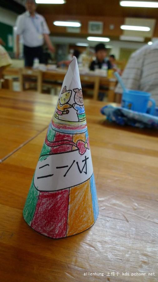 這是日本學生為我們準備的禮物,是他們畫的畫,做成小帽子放在桌子上。