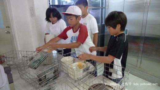 吃飯後,他們就立刻刷牙,飯堂裏就有敞開式的水池,很方便。