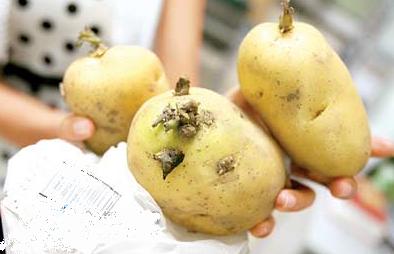 發芽土豆(馬鈴薯)的嫩芽和變成綠色的皮中龍葵堿含量很高,食用易中毒。因此,發芽和表皮發綠的馬鈴薯不宜食用。