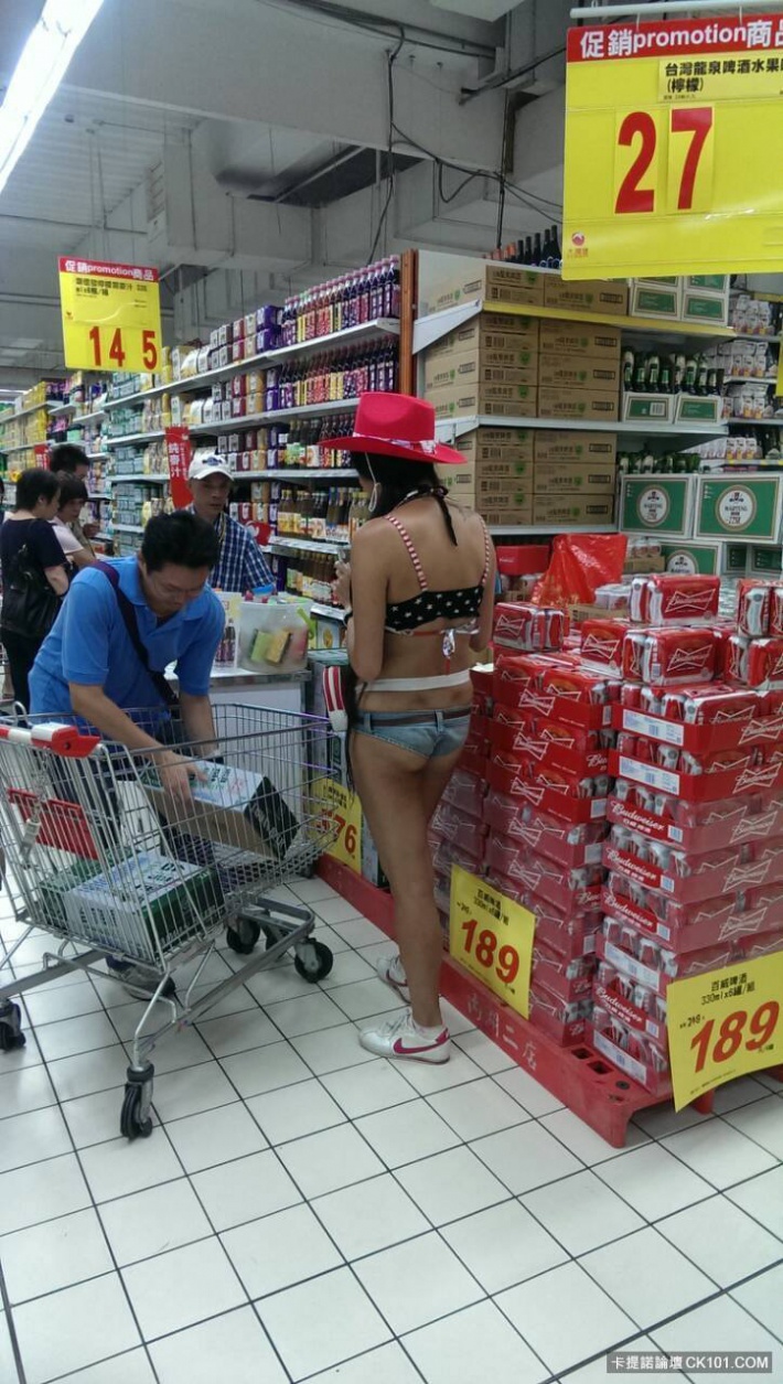 「這間大潤發是太熱了嗎?」美女酒促穿超熱辣比基尼迎客