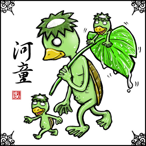河童是日本神話傳說中的謎樣生物,有鳥喙、猴身、蛙蹼與龜殼,頭頂有圓盤,頂上蓄著維持他生命的水。造型奇特,是日本家喻戶曉的妖怪。河童的「喜好」十分人性化,它們喜歡吃小黃瓜、茄子、南瓜,討厭鐵、玉米、牽牛花和葫蘆。傳說中,河童非常愛惡作劇,喜歡和小孩玩相撲,也會故意拉扯戲水者的腳,嚇唬他們。