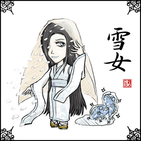 雪女是家喻戶曉的日式妖怪,長相柔美可人,常在雪地中魅惑男性,藉由親吻取走其靈魂食用。有的雪女會愛上人類,並化身為少婦與其結為連理,藉以考驗男性的忠誠,若有背叛便將之冰封。是具有浪漫及試探性格的妖怪。