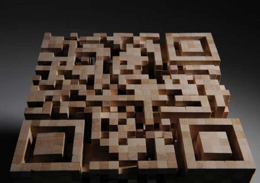 德國藝術家Elena Belmann最近就突發奇想,將2D的QR Code,轉化成3D立體木雕,在創作的過程中,Elena