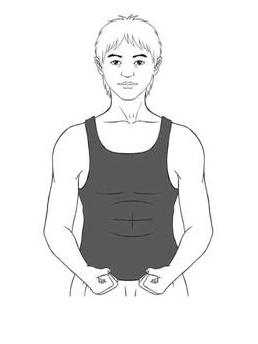 利用膝關節的上下抖動進行反復摩擦背後腎臟,雙拳不動,雙腳隨著身體抖動輕微起踮,感覺到腰部輕微發熱為止。