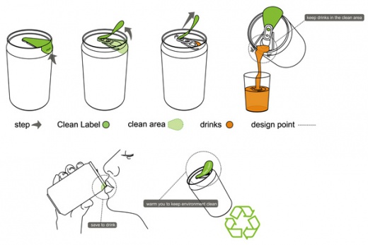 Meixian Su、Fengming Chen和Yujie Chen這三位設計師就發想了一款概念設計,利用低成本的半透明保護,輕鬆防止外面的灰塵或客人髒污的手指沾染上開罐蓋了,不使用吸管,不用特別另外清洗,就算是倒入杯子中,經過鐵罐也不用擔心喝到的是特別加料的飲品,小小的巧思就讓人有大大的方便!