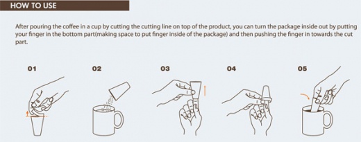 受限於人類天生的手指長度,所以用來泡咖啡的杯子也不能太深,如果你不想親自下海,也可以捏著包裝的角角去攪拌。