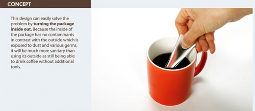 以包裝來說,這樣的產品應該有其市場,畢竟可以少用一根攪拌棒的點子確實很方便實用,還可以省下不少資源耗費!
