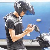 機車騎士在行進間或停等紅燈時玩手機,未來被抓到將開罰一千元。趙元彬攝