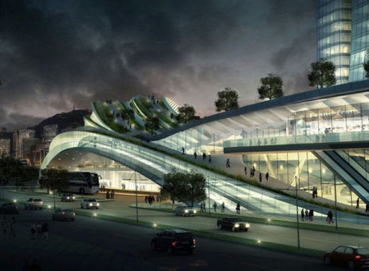 Rising 148 feet high above the surroundings, the structure’s roof line acts as dynamic-shaped pedestrian trails alongside green spaces. This park/terminal hybrid fabricates a promised view of the future – we can’t wait to see it finished and on-line.