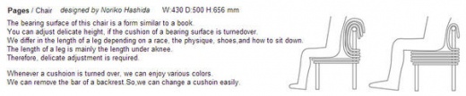 買單椅的好處是不受時間影響,因為本身體積不大,裝潢前後看到喜歡就能買,但缺點是高度的調整 (除非你買的是氣壓式單椅)。因此來自日本的設計公司 6474 Design 想到一個破解法,把椅墊採書頁的方式設計,每翻一頁椅墊就低一點,相對的椅背也厚一點,適合時常招待親友來家做客的屋主,讓每位親友可隨自己身型「翻」出最舒服的高度,實在很貼心ㄟ。