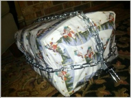 找幾個好看的包裝紙包好之後 再用鐵鍊綁起來,製造一點噱頭!