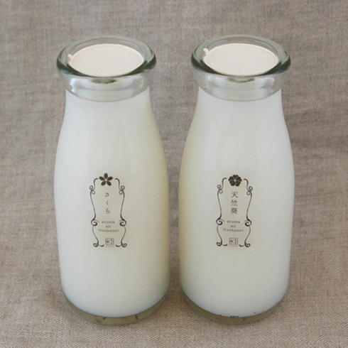 猛然一看會有些摸不著頭緒,為什麼要把一罐滿滿的牛奶放在桌上(而且還不快點喝掉)?原來這些懷舊風味的牛奶瓶是除臭的芳香劑,就算沒有除臭功能,放在室內的任何角落也有獨特的懷舊氛圍阿!