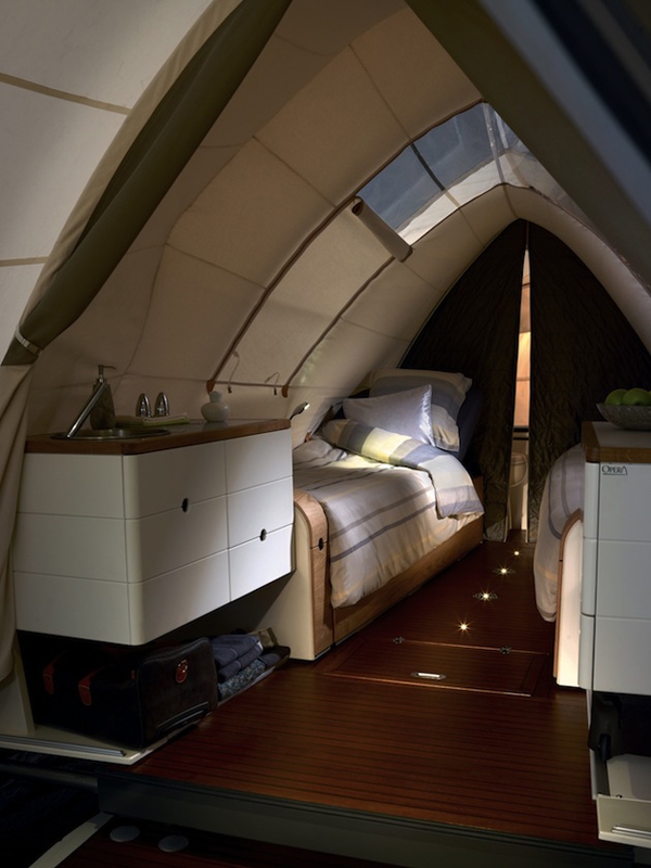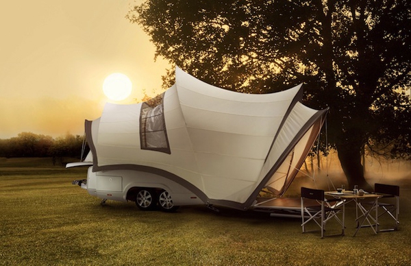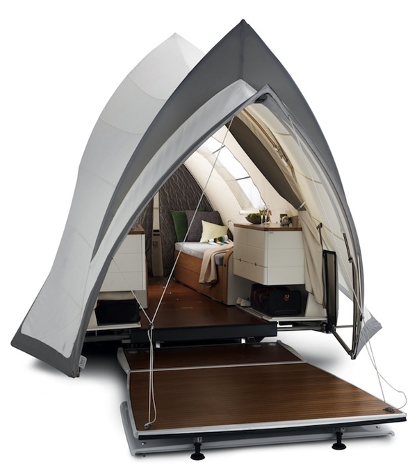 這款叫做 OPERA 的豪華拖車,不只外觀上有著優雅的杏色系設計,就連屋簷的部份都像極了雪梨歌劇院的屋頂,裡面配備有陶瓷馬桶、地板內鑲的 LED 照明、柚木陽台、木製家具等等,也難怪號稱世界一流的頂級旅行拖車,如果出遠門都有這樣的拖車可住,可能都不容易想家了吧XD