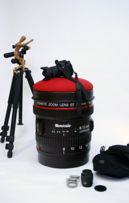 設計師特地放了一台實體大小的相機作為比例尺,要讓大家知道這個鏡頭有多巨大!
