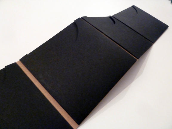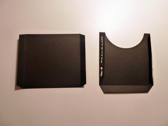 接著就把兩個摺邊紙片塗上白膠,黏貼在三個摺邊紙片後面。現在我們已經完成 CD 套了,但是還有三個摺邊沒有黏。
