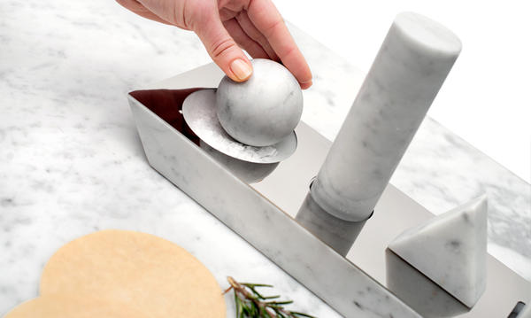 球形的香料研磨器、三角型切割刀、正方體帶有波浪的用來去魚鱗、最後配上桿麵棍,義大利超過五十年歷史的設計公司 Opinion Ciatti 推出的 Elementare 廚房料理工具,以基本的形狀帶出基本的功能。特別以大理石材質打造,不單單是為了觸感或美觀,石材的重量讓你在研磨、桿麵時輕鬆不費力,最棒的是石材的毛孔小吸水率低,所以不用擔心料理後清洗不掉食物的腥臭味,是對氣味敏感的你最佳選擇呢!