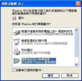 圖說:原本無法開啟的隨身碟,拔除之後再插入,又會出現自動執行畫面。
