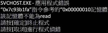 圖說:中了USB病毒後,每次開機可能出現「svchost.exe應用程式錯誤」。