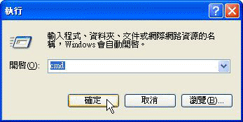 圖說:於「執行」視窗中輸入「cmd」指令。