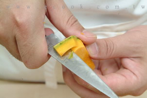 所以要將邊角修圓,還有一個重點就是烹煮時不要用太過寬大的鍋子,因為會有很多空隙,在烹煮時就會激烈滾動。如用小鍋將食材緊密排入,再進行烹調即可改善。