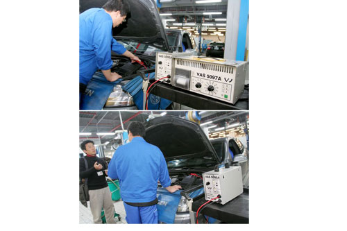 我們實際走訪了原廠、大賣場以及「電池專賣店」,發現價格差異頗大,但以專賣店的價格最便宜。正規的車廠大多會主動替客戶的車輛充電,以VW車系為例,在進行保養的同時,技師也會一併檢查電瓶功能並進行充電的動作。根據標達汽車內湖廠廖昱翔組長表示;車輛啟動時最為耗電,其次是夏天夜間開冷氣,在燈光與壓縮機兩大「敗家子」的消耗下,電瓶內的蓄電量很快就被用光,如果發電機再不爭氣點,昂貴的汽車電瓶馬上就壽終正寢。