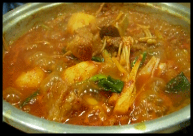 表現:熱騰騰的火鍋中的美味一夾起來便直往嘴裡送,燙得舌頭發麻。額頭髮汗.大呼過癮,並美其名曰:「一熱當三鮮」。